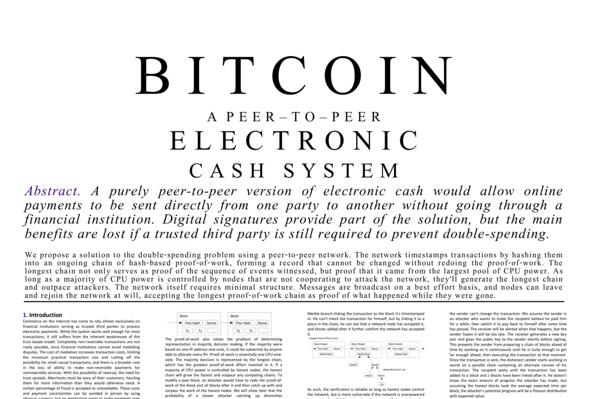 31 октября 2008 года в криптографической почтовой рассылке было опубликовано сообщение от автора под псевдонимом Сатоши Накамото со ссылкой на документ Bitcoin: A Peer-to-Peer Electronic Cash System. В этом white paper была описана концепция децентрализованной платежной системы, работающей напрямую между пользователями без посредников.