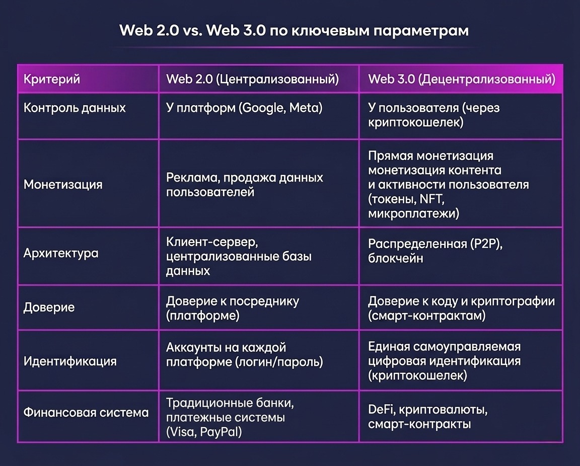 Сравнительная таблица: Web 2.0 vs. Web 3.0