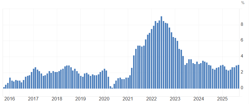 Более того, инфляция вновь начала расти, поднявшись с 2,3% в апреле до 3% в сентябре. Тем не менее, ФРС продолжает снижать ставку, несмотря на растущие инфляционные риски.