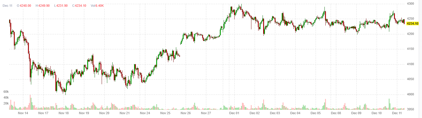 Главный бенефициар этой политики, золото, не смогло пробиться к новым максимумам и остается в рамках консолидации, сформировавшейся в начале декабря.