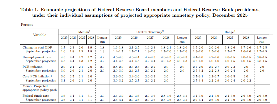 Помимо решения о ставке, ФРС опубликовала свежий вариант экономических прогнозов, включающий в себя предсказания центрального банка по поводу роста ВВП, безработицы, инфляции и траектории ставки. Российский аналог этой публикации — среднесрочные прогнозы нашего ЦБ.