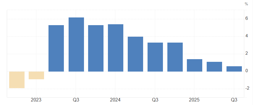 По прогнозам Банка России, в 2026 году ВВП вырастет на 0,5 — 1,5%, после чего выйдет на сбалансированную траекторию роста, составляющую 1,5 — 2,5%.