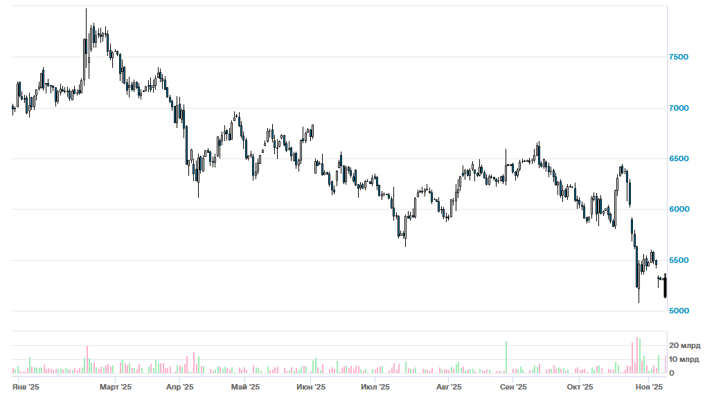 Акции Лукойла продолжают падать после объявления о санкциях США. Источник: МосБиржа