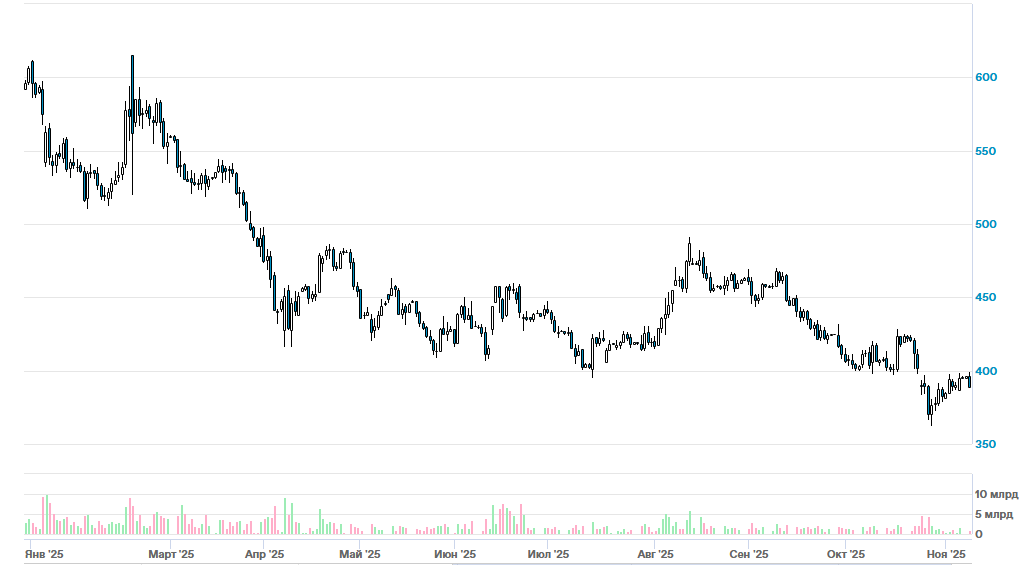 Акции Роснефти не радовали своих инвесторов в этом году. Источник: МосБиржа