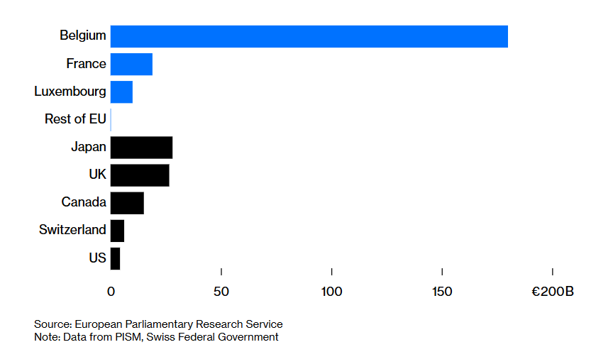 Расположение российских замороженных активов по оценке Bloomberg. Источник: Bloomberg